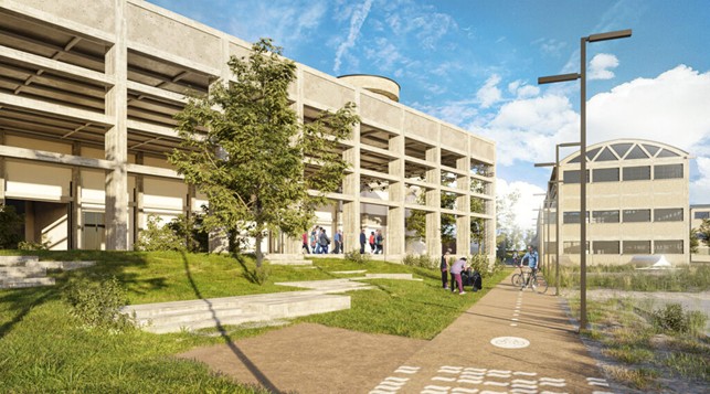 La visione architettonica si fonda sulla permeabilità. La superficie introversa e privata tipica delle attività produttive viene colonizzata da nuove attività strategiche e attraversata da percorsi e flussi a scala locale e sovralocale. Si compie così una vera e propria rivoluzione: un sistema di piazze coperte di circa 3.000 metri quadrati attraversa l'intero complesso, mentre tagli strategici nei fronti e un affaccio rinaturalizzato verso est riconnettono gli spazi al paesaggio circostante, urbano e naturale. Nel disegno unitario, il "podio" coperto viene preservato come elemento pubblico di mediazione tra interno ed esterno, capace di ospitare eventi, mercati e spettacoli.