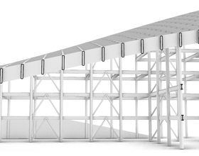 Le travi principali saranno costituite da profili in acciaio alveolati a doppio T. La presenza delle forature permetterà di gestire il passaggio degli impianti nel pacchetto strutturale non ingombrando ulteriormente lo spessore totale dell’impalcato finito. Dal punto di vista statico e costruttivo, le travi in profili alveolati permettono un risparmio di materiale se comparate a profili a parete piena senza riduzioni significative della capacità resistente a flessione e vengono realizzate tramite procedimenti di taglio e risaldatura direttamente in stabilimento. Le travi verranno solidarizzate ai pannelli in Xlam posti al di sopra mediante sistemi di connessione meccanica che permettano il funzionamento di trave a sezione mista acciaio–legno.