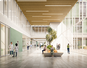 L’ospedale occuperà 60.000 m² e offrirà 503 posti letto, con un layout pensato per coniugare funzionalità e accoglienza: un blocco piastra con sei torri collegate da una “Main Street”, ampie aree verdi, terrazze panoramiche, percorsi pedonali e parcheggi dedicati. Tra gli spazi interni, 8