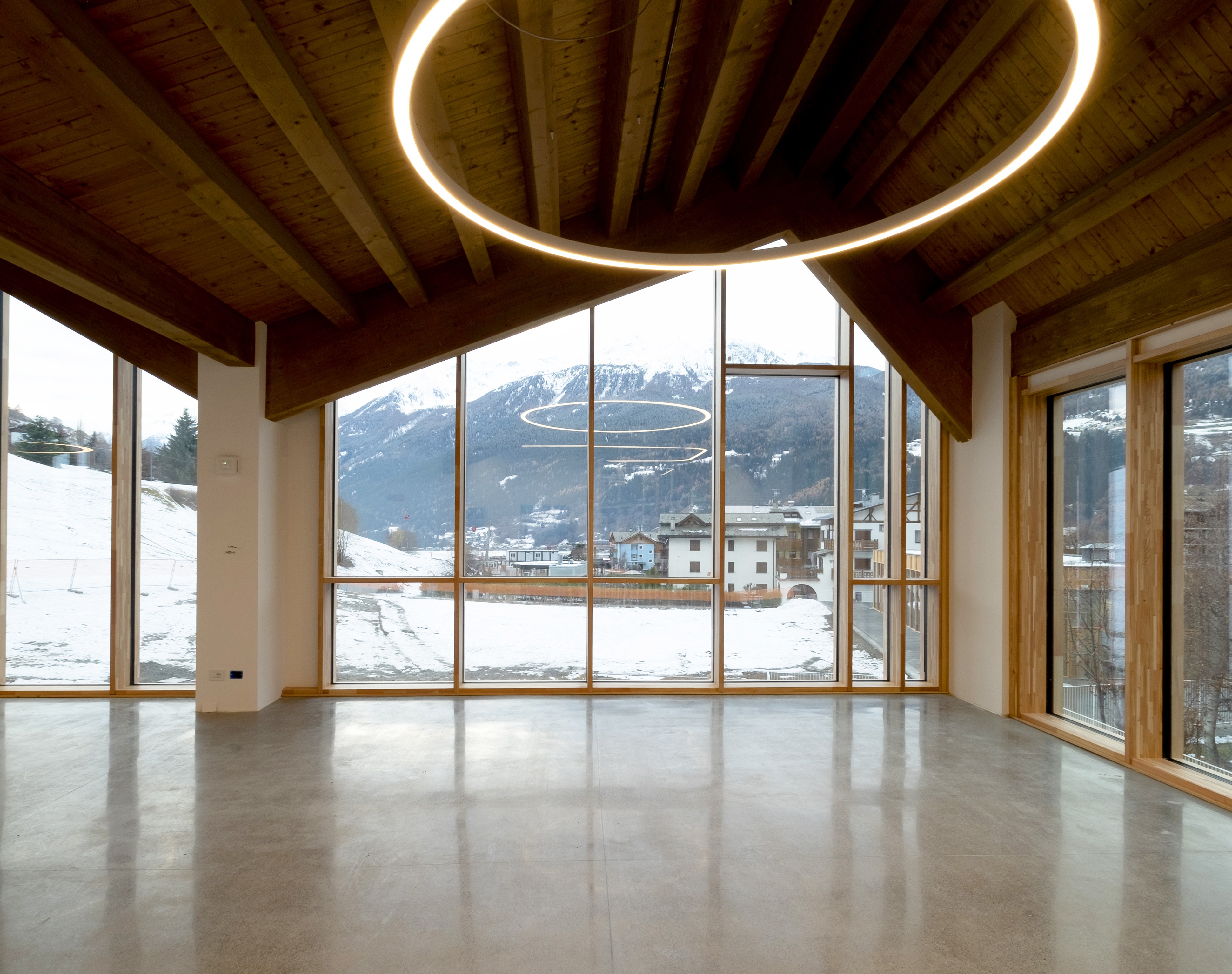 Gli edifici sono stati concepiti come Nzeb, ovvero edifici a energia quasi zero, caratterizzati da fabbisogni energetici molto ridotti e coperti da fonti rinnovabili. In particolare, il complesso produce la propria energia mediante un impianto fotovoltaico da 42 kW ed è allacciato ad un sistema di teleriscaldamento alimentato da fonti rinnovabili. Lo Ski Centre include l’Hospitality Lounge per il supporto agli staff tecnici, i media e gli ospiti istituzionali - e il Family Lounge, uno spazio destinato all’accoglienza del pubblico e alle attività durante gli eventi sportivi.
