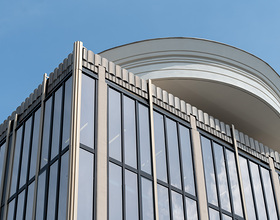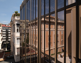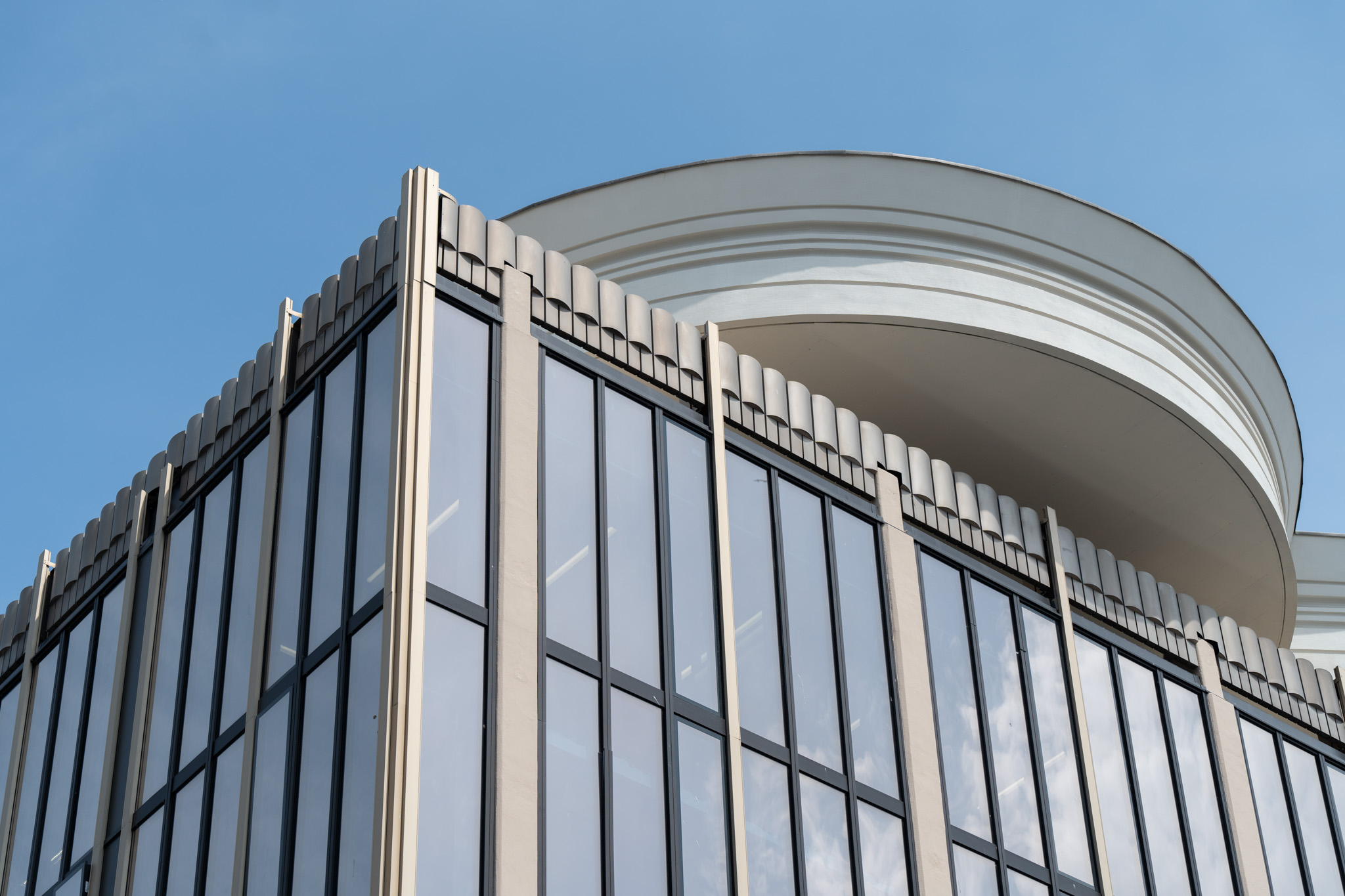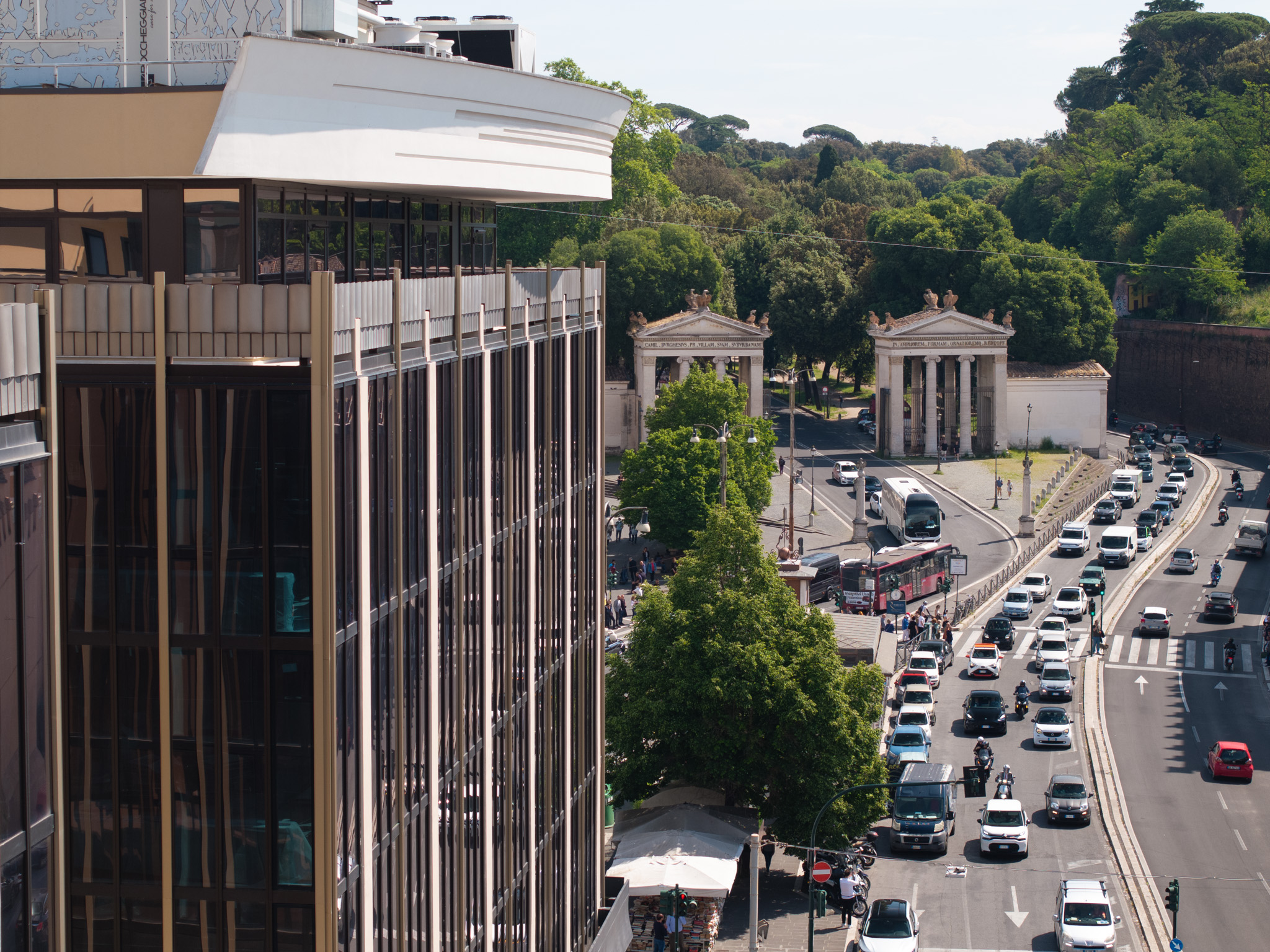 L’edificio sito a Roma in P.le Flaminio è stato progettato negli anni ’70 da Luigi Moretti. Il restauro filologico, grazie alle tecnologie più moderne e performanti, prevede che le nuove facciate abbiano una verticalità ricercata che ai tempi era impossibile da ottenere. Gli interventi agli elementi delle facciate, come i cornicioni di alluminio, i volumi in cemento armato in copertura e i pilastri bianchi, sono minimi.